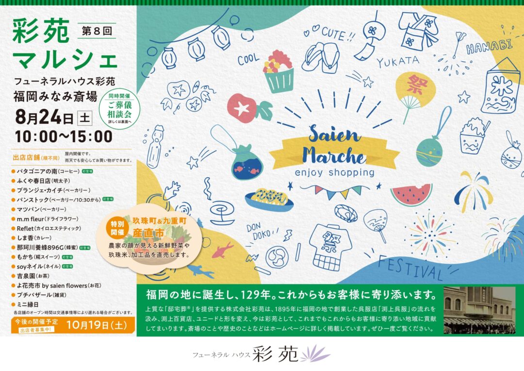 【8/24】春日市須玖北にてマルシェを開催します(葬儀社彩苑 福岡みなみ斎場)