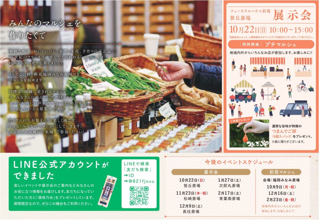 2025年10月11日(土) 笹丘斎場でマルシェ&ご葬儀相談会を開催します【福岡市中央区】