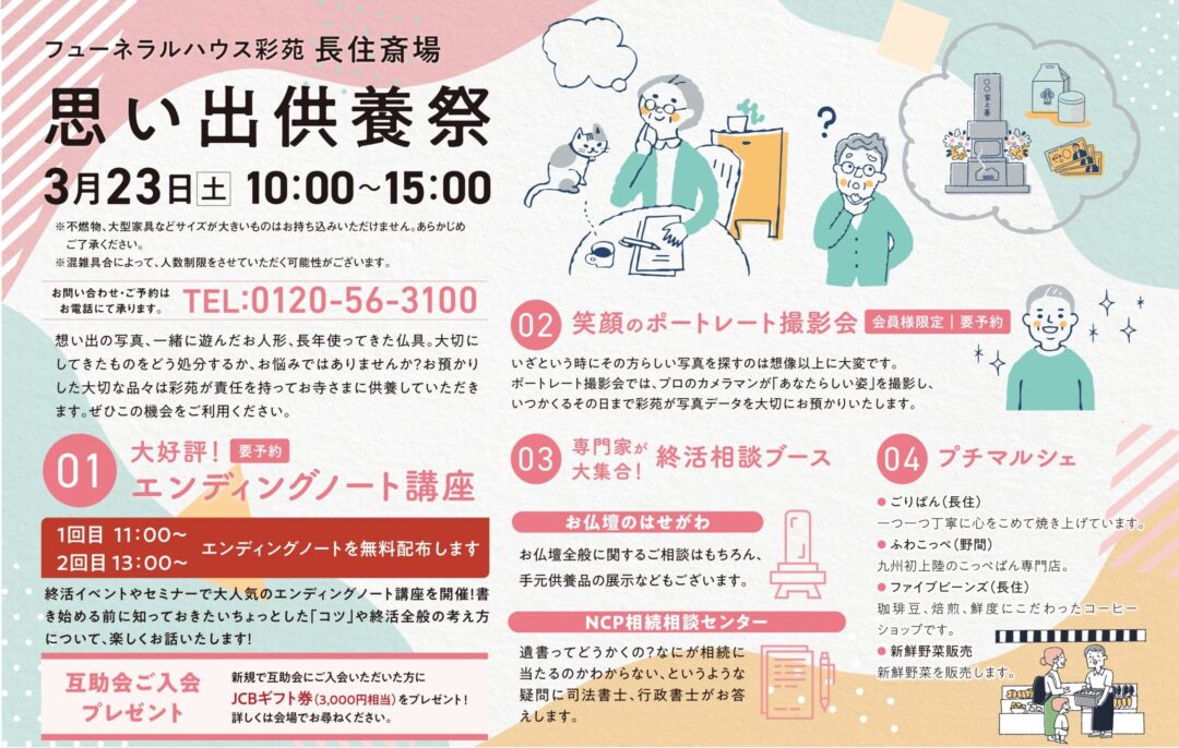 【福岡市南区】3月23日 長住斎場で思い出供養祭(人形供養・仏具処分)を行います。