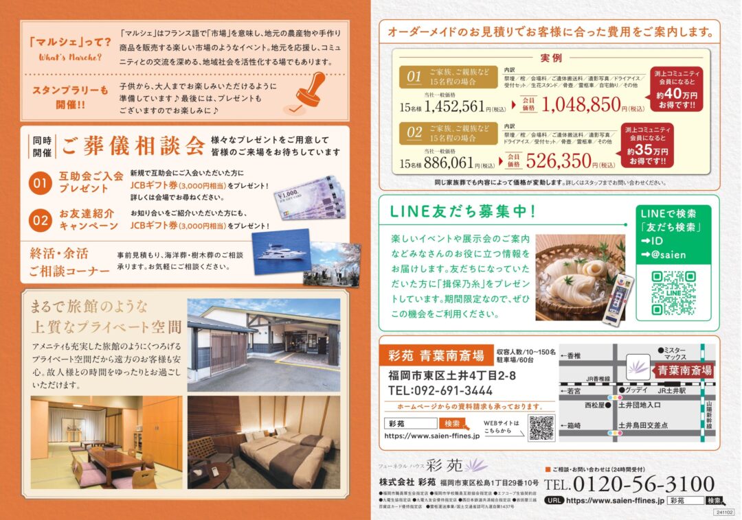 葬儀社彩苑からのお知らせです。