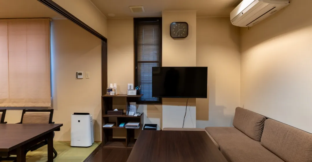 ご家族・ご親族が過ごすお控室は、リビング・ベッドルーム・お風呂トイレなど、夜間も利用されたい方や遠方から来られる方にもご満足いただける設計となっており、他の葬儀の参列者などに気兼ねすることもありません。