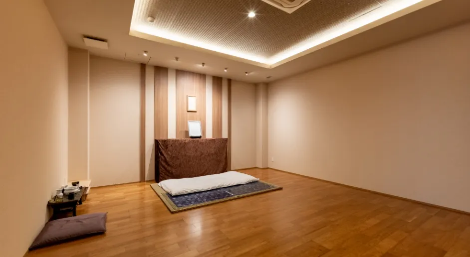 福岡みなみ斎場では安置室をご用意しておりますのでご安心ください。ご自宅でお休みいただくためのスペースを確保することが難しいなどの理由で多くの方にご利用いただいておりますので、お気軽にご相談ください。お葬式のご依頼のお電話をいただいた際に、ご自宅か、当式場の安置室をご利用されるかをお聞きさせていただきます。