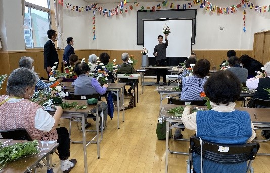 前半の余活終活セミナーは講師のおもしろおかしい話しに皆さんの笑い声が絶えず、後半のフラワーアレンジメント教室ではお一人お一人がアレンジメントの完成まで楽しまれています。